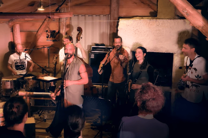 Ce groupe franco-polonais relie l’owijok de Sieradz et la bourrée trois temps française. Ces artistes parlent un seul et même langage musical – bien que, comme ils le disent eux-mêmes, « avec un accent légèrement différent ». Çò gropa franco-polonés religa l’owijok de Sieradz e la bandada tres temps francesa. Aqueles artistas parlan un sol e quitament lengatge musical – malgrat que, coma o digan eles meteisses, « amb un accent leugièrament diferent ».
